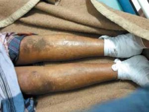 “They went out every evening, took our clothes off and put us on mosquitoes” he says. ” five people kicked me on my kidneys, chest, and even my face” he added.