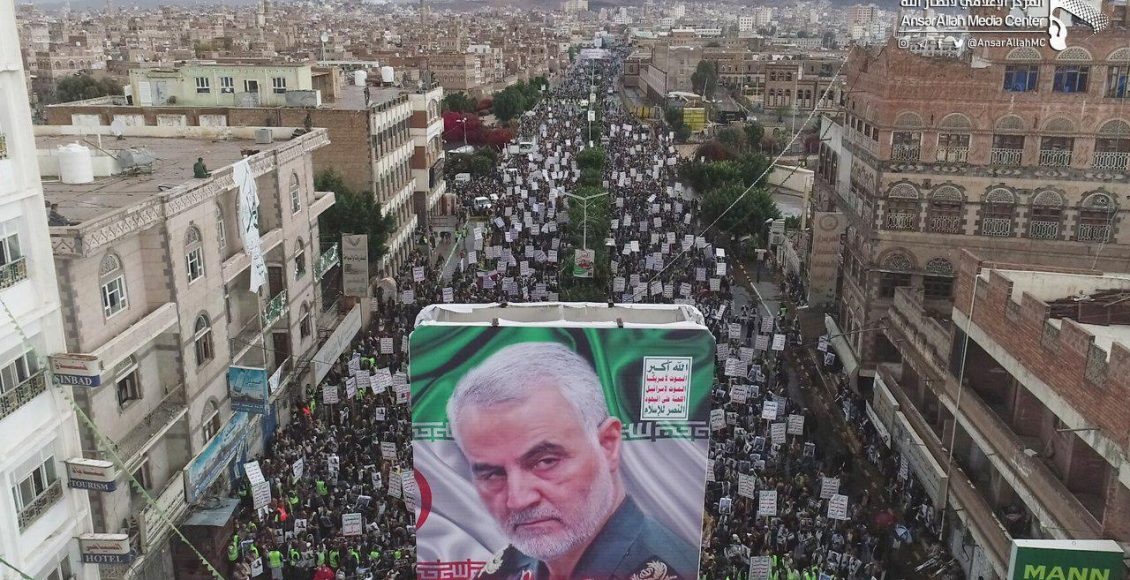 SANAA, Jan. 6 (YPA) – Yemen Press Agency obtained initial pictures of the mass rally staged Monday afternoon in Bab al-Yemen Square in the capital Sanaa to condemn the US assassination of Qassem Soleimani and Abu Mahdi al-Muhandis, and in solidarity with Iraqi and Iranian peoples.