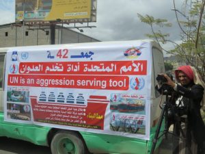 A statement, issued during the protest, called on the United nations to take its responsibility towards the besieged Yemeni people and do the role entrusted to it Yemeni without impartiality.
