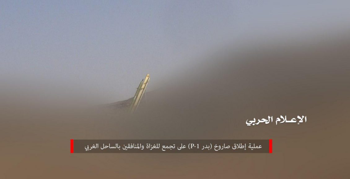 SANAA, Oct. 28 (YPA) – The military media of the Yemeni army has released on Sunday a footage showing the Rocketry forces launching a “smart missile” named “Badr 1-P” on gathering of Sudanese militants in the western coast of Yemen.