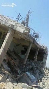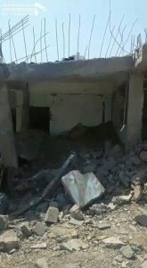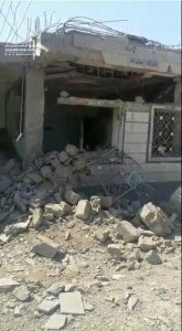 On Tuesday, the coalition’s warplanes targeted the home of Naji Saleh al-Sharji with several raids in Bait-Al-sharji village of Qataba district.