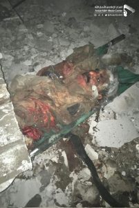 SANAA, Sept. 1 (YPA) – The Yemen Press Agency on Sunday obtained several pictures show horrific scenes of new crime committed by Saudi-led aggression coalition against its own prisoners of war when it launched several air strikes on a center of prisoners of war in Dhamar province.