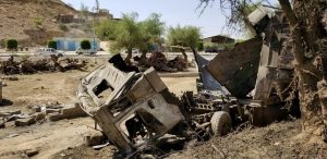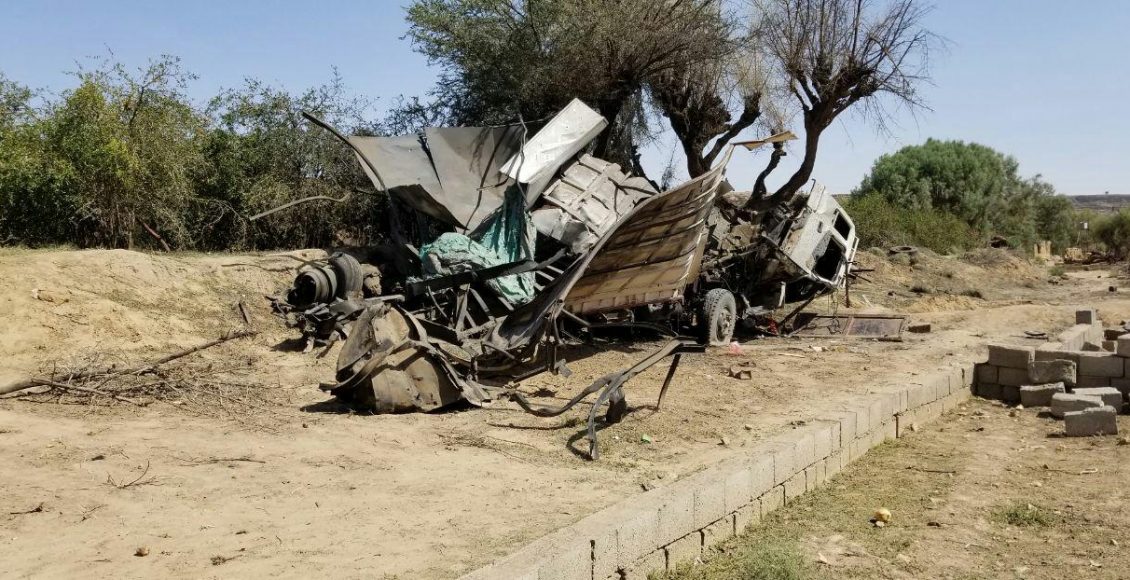 SANAA, Sept. 20 (YPA) – Yemen Press Agency on Friday obtained several photos show the wreckage of a citizen’s truck bombed by Saudi-led aggression warplanes in Al-Oqab area Sahar border district of Saada province, northern Yemen.