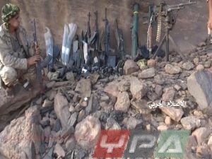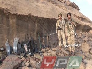 The photos showed a large quantity of weapons seized by the Yemeni army while they were repelling infiltration attempts of Saudi-backed militias to progress in Jizan front.