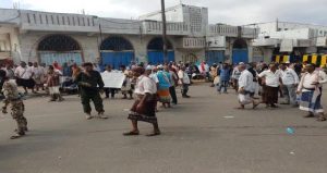 The palace’s guarding affiliated to the STC’s militias fired live bullets to disperse demonstrators from those forcibly excluded, who demand the payment of their salaries cut off by Hadi’s government.