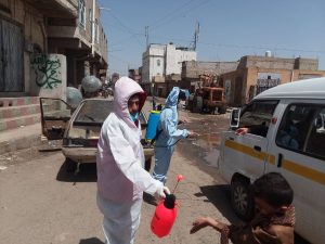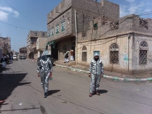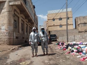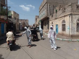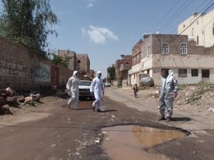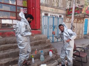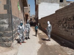 SANAA, May 25 (YPA) – A group of activists in the Bir Hotram neighborhood in the capital Sanaa, has on the first day of Eid al-Fitr launched a desinfection campaign in several streets and neighborhoods, as part of general measures to confront Covid-19.