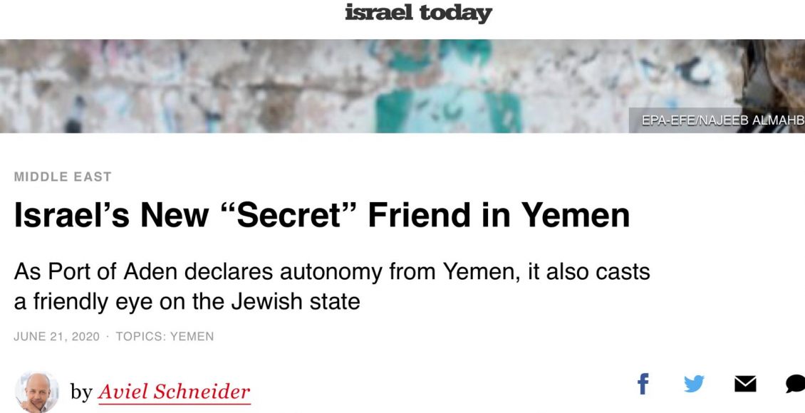 According to the writer, “many Israelis responded positively to these sentiments, and sent greetings to the new autonomous state in Yemen. Various sources in Jerusalem told Israel Today that Israel is conducting secret meetings with the new government in southern Yemen.”