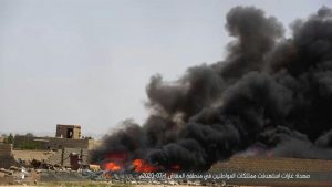 The source declared that the warplanes targeted a yard of a citizen’s home in al-Maqash area with two raids, burning a car, winch and several properties including the death of a number of livestock.