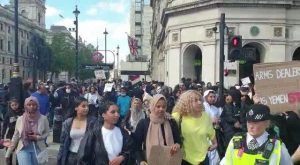 SANAA, July 6 (YPA) – British capital, London, witnessed on Sunday the departure of hundreds of demonstrators, including Britons, Arabs and Muslims, to protest against the continuation of the Saudi-Emirati coalition war and its siege on Yemen.
