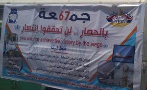 His remarks came during a vigil protest organized by employees of the YPC in front of the UN office in Sanaa after Friday prayers entitled “You will not achieve the victory be the siege.”