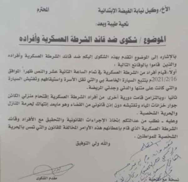 He added that another military police patrol broke into and searched his house without a judicial permission, which is considered as a violation of the sanctity of homes and personal freedom, according to the complaint.