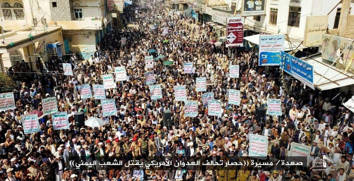 SAADA, Feb. 26 (YPA) – Thousands of civilians in Saada province stage a mass rally on Friday condemning the aggression and blockade imposed by the US aggression on Yemen.