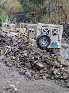 Documented photographs show the magnitude of the torrential rains in the village of Al-Sarm in the Directorate of Al-Masrakh, where rising water levels have washed away many cars.