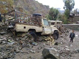 The photos obtained by the Yemeni Press Agency reflect the extent of the destruction caused by the floods, without knowing the number of victims until the moment.