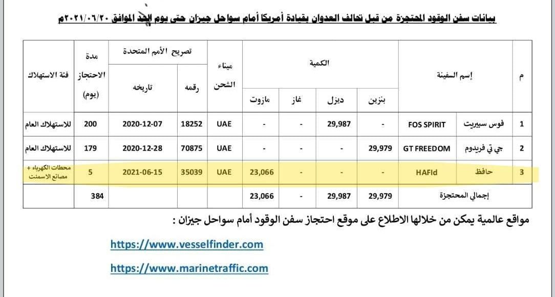 The YPC’s spokesman in Sanaa, Issam Al-Mutawakel, said on Twitter that the coalition prevented the oil ship (HAFID), which carries a quantity of 23,066 tons of diesel, from reaching the port of Hodeida.