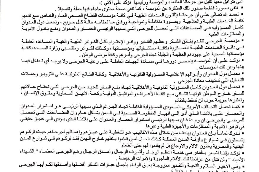 The statement said that all the contents of that the memorandum are false and propaganda carried by the coalition to target the wounded.