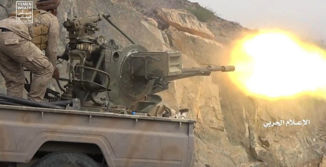 For the first time, the Sanaa forces revealed a new weapon, which was presented in Saturday’s press conference and appears to have been recently introduced into the battle, as the scenes showed one of the fighters on board a military kit and firing from this weapon a group of incendiary explosive bombs.