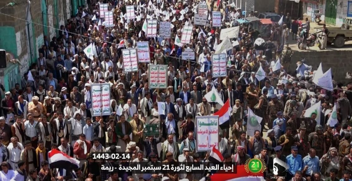 RAYMA, Sept. 21 (YPA) – Rayma province witnessed on Tuesday a popular march to mark the seventh anniversary of the September 21 revolution.