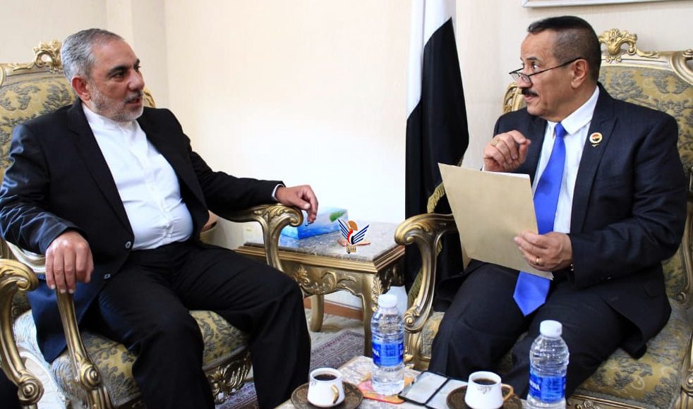 SANAA, Nov. 10 (YPA) – The Minister of Foreign Affairs, Hisham Sharaf, on Wednesday discussed with the Iranian Ambassador in Sanaa, Hassan Irlou, the areas of existing cooperation between the two countries and ways to enhance and develop them.