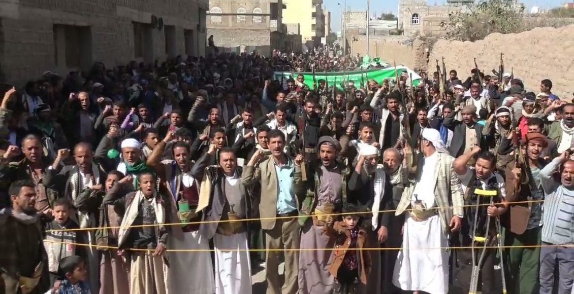 At the rally, the participants indicated that America is behind the military and economic escalation and the killing of the Yemeni people.