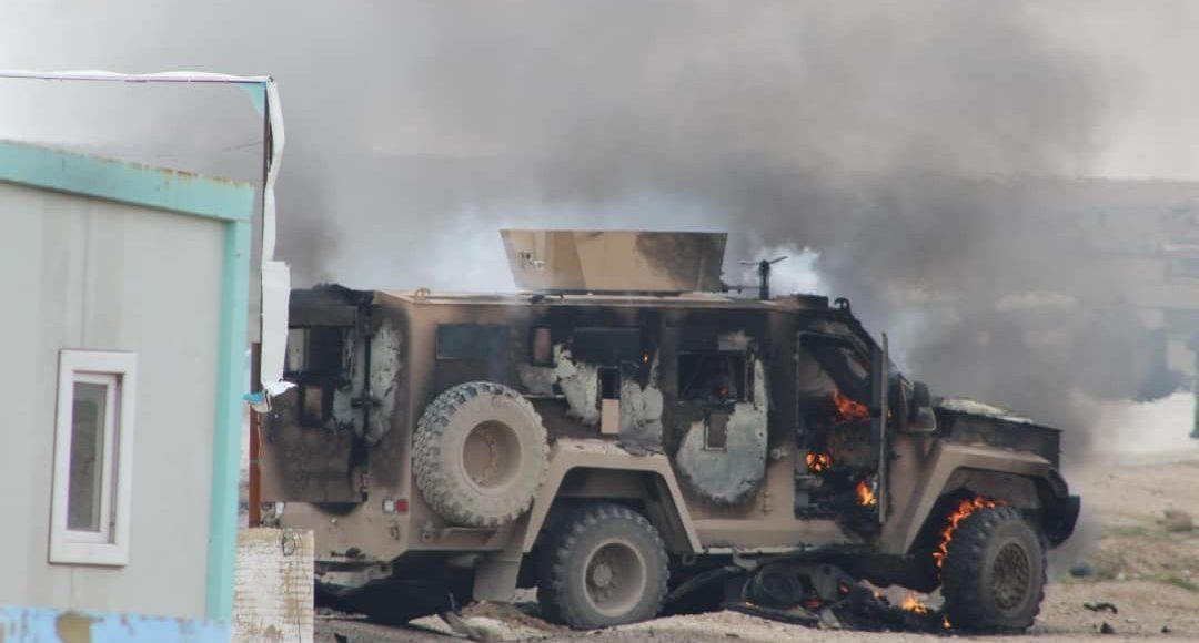 The sources mentioned that two trucks carrying logistical materials for US forces burned due to explosive device explosion near Semalka illegal crossing.