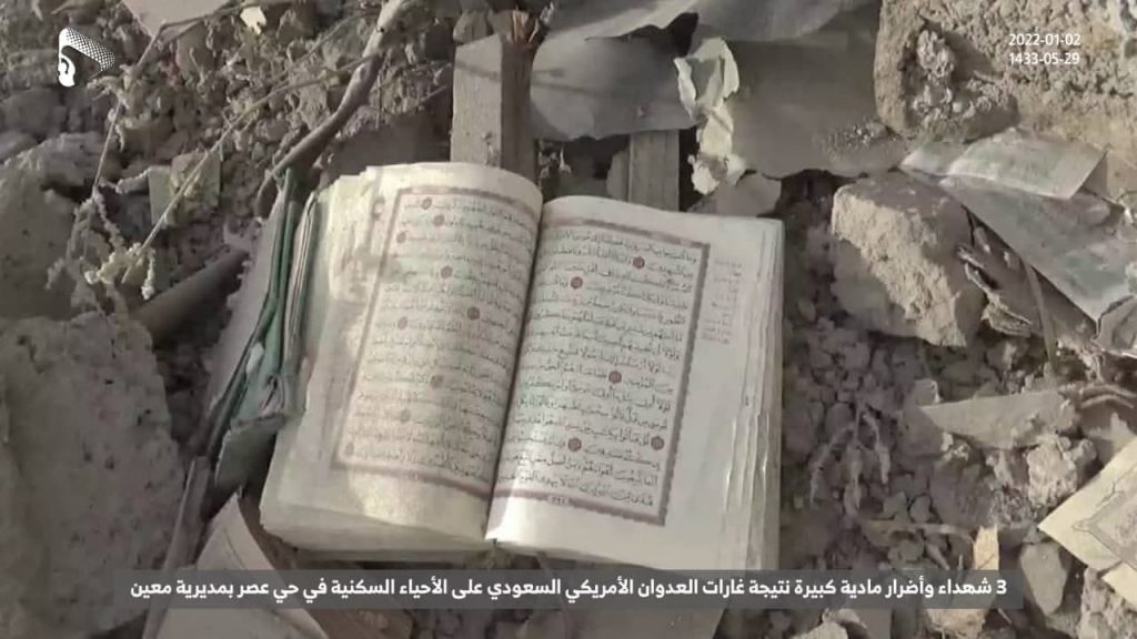 The US-backed Saudi-led aggression coalition’s warplanes targeted a mosque in Sawad Assir area of Maain district two times, killing three citizens, destroying the mosque and causing heavy damage to several homes and schools.