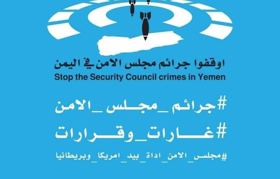 The committee considers this campaign as a starting point for broader campaigns aimed at stopping the crimes of the Security Council around the world, urging the conscious and free voices to convey the grievances of Yemen. The committee equally stresses that the Security Council is one of the most prominent pillars participating in the aggression by covering up the crimes and its parties, and its attempts to grant it a false legitimacy.