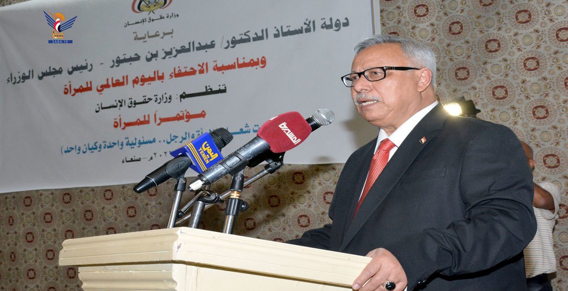 SANAA, March 08 (YPA) – The Prime Minister, Dr. Abdulaziz Saleh bin Habtoor, on Tuesday considered the participation of women in various fields of life as one of the main factors for the development of societies and countries.