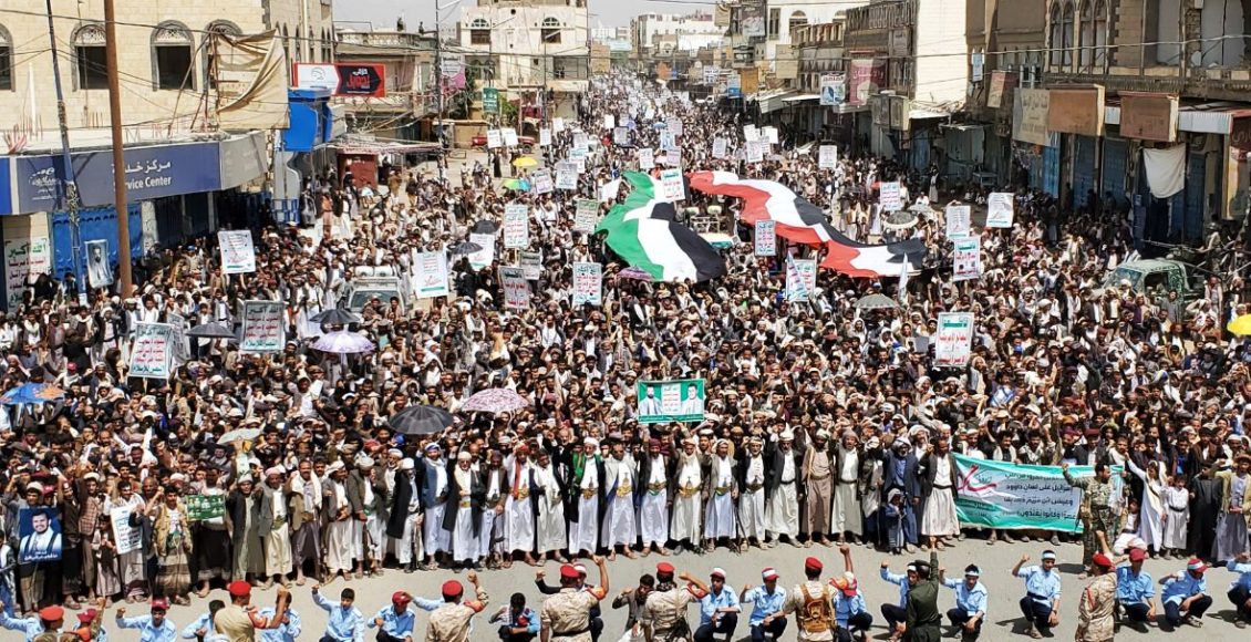 They chanted the Sarkha, which is a cry in the face of arrogance and dictators, and raised the Yemeni flags and Palestine flags, as well as Al-Sarakha slogan banners .
