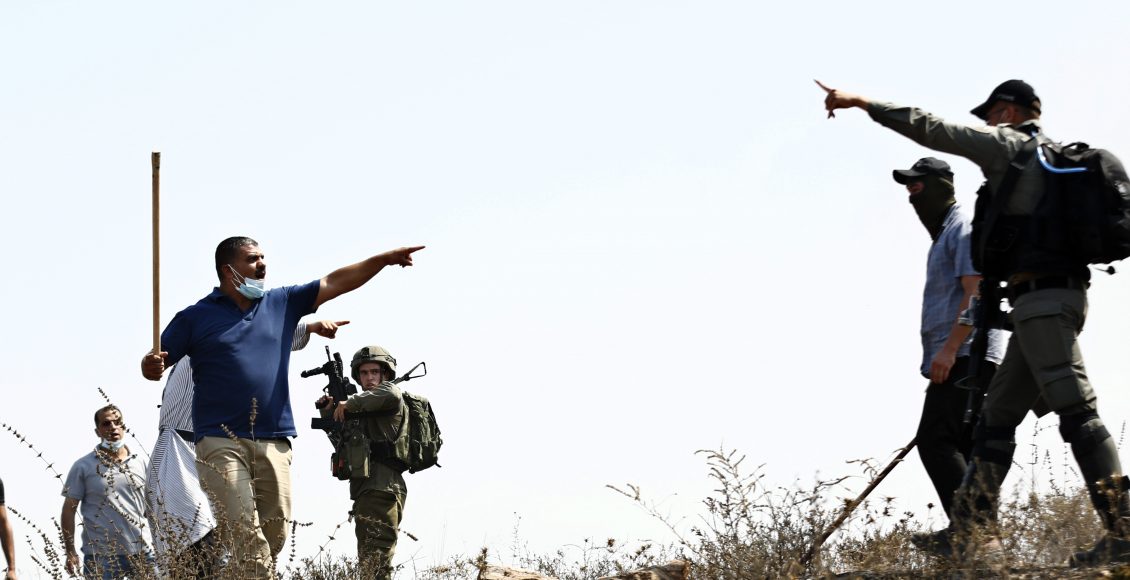 Member of Kisan village council, Nabil Ibayyat, said that five Zionist armed settlers, protected by soldiers, attacked shepherds and farmers with pepper spray causing burns to the face, and threw stones at homes.