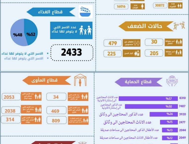 On the humanitarian interventions by international organizations, the representative of the Executive Unit for the Displaced, Ahmed Al-Dhahyani, stressed that the organizations’ humanitarian interventions cover some of the needs of the displaced, but the volume of need exceeds the humanitarian intervention by humanitarian partners.