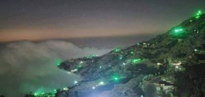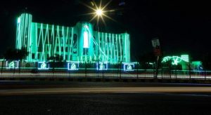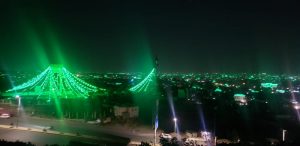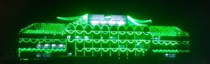 During the night, all state facilities and buildings are illuminated with a green light. The atmosphere gives the walkers spirituality and tranquility.