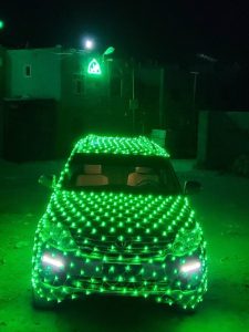 They decorate their vehicles ahead of the celebrations. Mass preparations are under way. Most of the streets of the capital Sanaa are decorated with green lights.