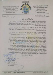 The union explained that the strike began, Monday, in condemnation of the current chaos that harms the bank and deliberately distorts the name and reputation of the bank.