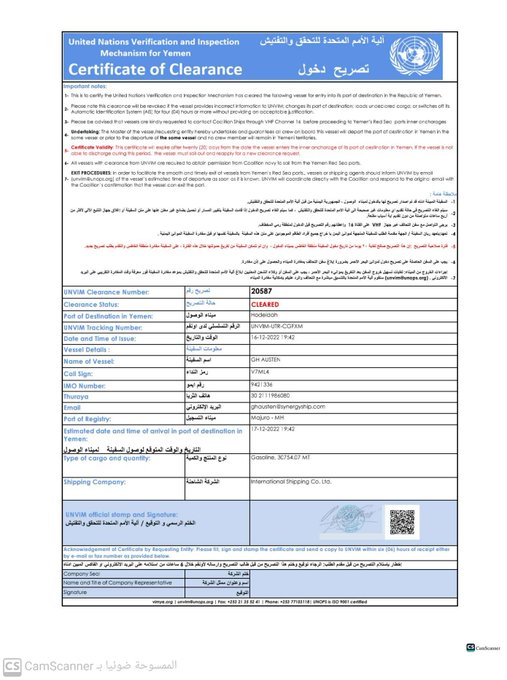 The spokesman of SANA’A Oil Company, Essam al-Mutawakkil, said that the coalition detained the gasoline ship “JH Austin” and prevented it from reaching the port of Hodeida, despite its humanitarian nature and its forced inspection in Djibouti, pointing out that the number of ships detained by the coalition has increased to five ships .