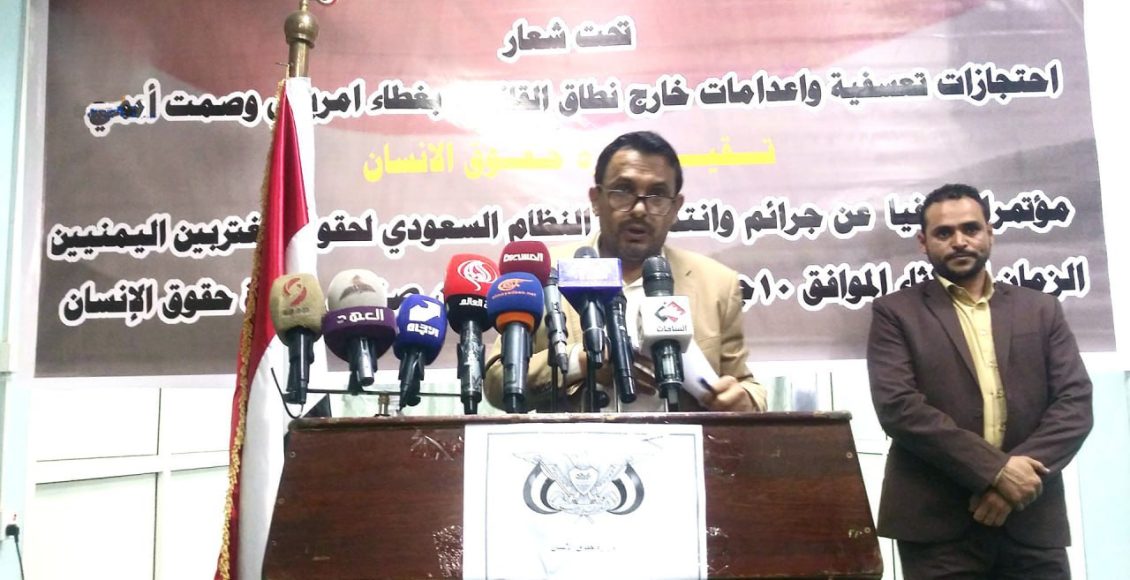 SANAA, Jan. 04 (YPA) – The Ministry of Human Rights has on Tuesday organized a press conference in the caopital, Sanaa, on crimes and violations of Saudi regime against Yemeni expatriates under the slogan “Arbitrary detentions and extrajudicial executions under American cover and UN silence.”