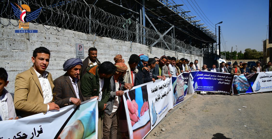 In the rally, organized in front of the United Nations headquarters in Sanaa, the protesters of merchants denounced the coalition-backed government’s decision, which comes within the framework of the aggressive war and the economic and commercial blockade against the Yemeni people.