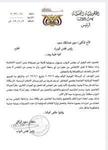 In his letter, al-Barakani called on Maeen Abdul-Malik to take punitive measures against pro-coalition Saba Agency.