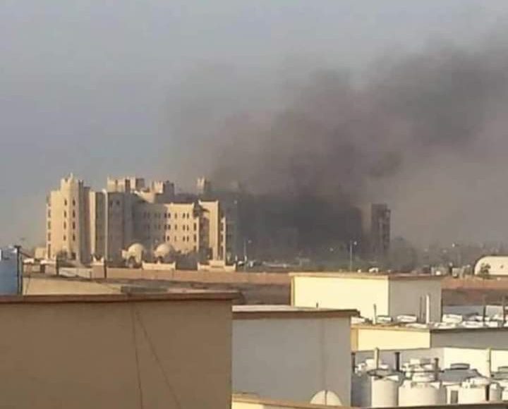Activists on social media circulated pictures showing columns of smoke rising from the burning hotel heavily over the area.
