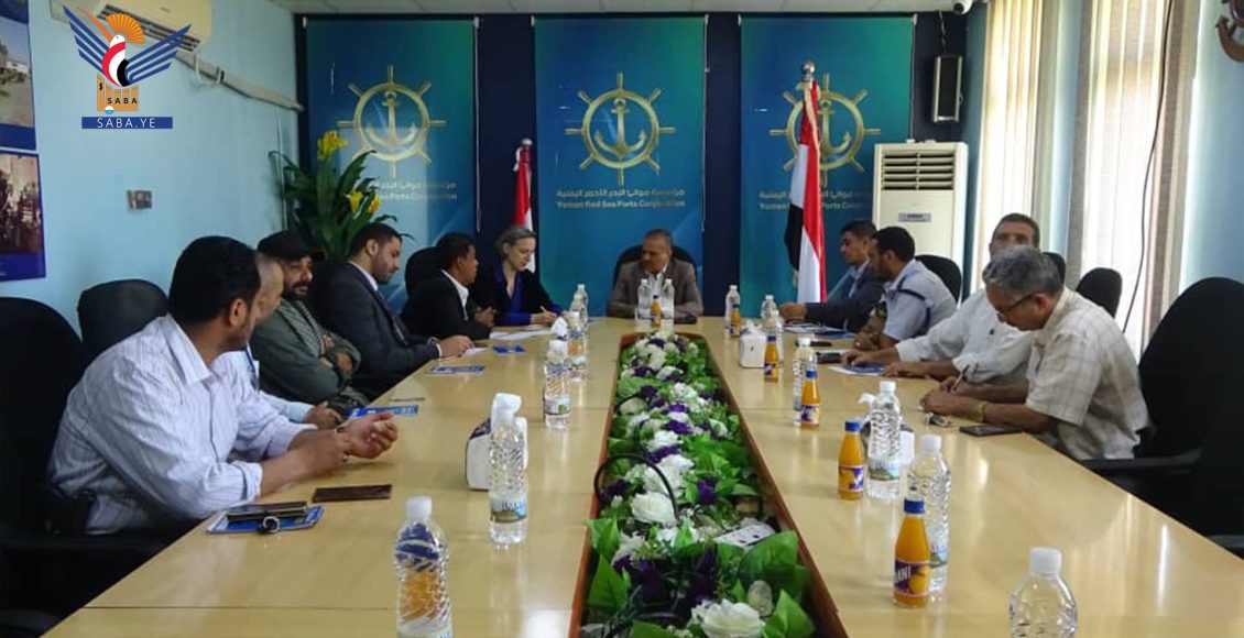 The meeting, which included the CEO of the Red Sea Ports Corporation, Captain Muhammad Ishaq, and his deputy, Zaid Al-Washli, discussed aspects related to the progress of work in the port of Hodeida, in conjunction with the arrival of several ships to its berths.