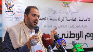 A statement issued by the conference, read by the head of the legal oversight department, Ali Noureddine, said “The US-Saudi aggression coalition targeted the General Secretariat of the Presidency of the Republic for eight years with 1,000 raids, leading to the destruction of the palace, buildings and capabilities of the institution in Sanaa and its branches in the provinces.”
