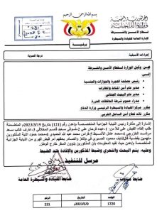 The document, addressed to “the Passports Authority, the Director General of Ports and Airports, the West Coast Security Sector, and Control unit at pro-coalition Ministry of Defense ,” calling for the arrest of the wanted persons, according to a memorandum by the head of the Specialized Criminal Prosecution in Aden last March.