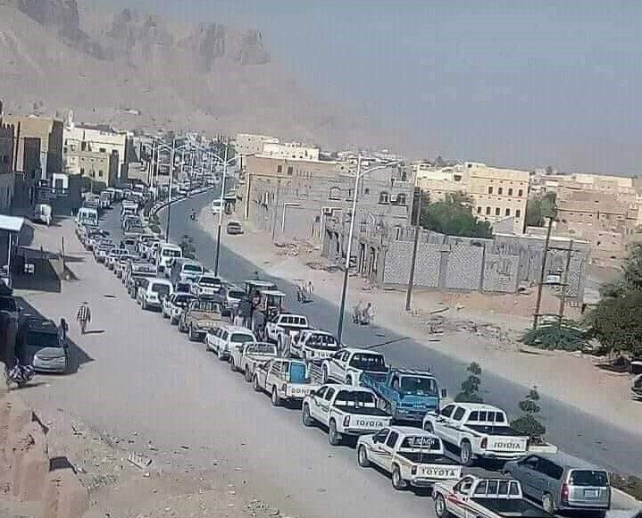 HADRMOUT, July. 13 (YPA) – Hundreds of cars and motorbikes are waiting in long queues to supply with the fuel after oil stations closed their doors in the city of Seiyun, the provincial capital of oil-rich Hadramout, to citizens.