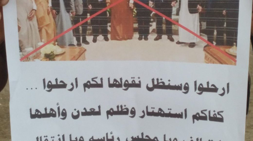 The angry protesters called on the coalition and its “Presidential leadership council” to leave Aden and stop their policy of recklessness towards the people of the city.