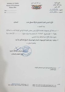 On Monday, Yemeni activists on social media posted a leaked official document showing a directive to the Minister of Oil and Minerals in the pro-coalition government, Abdul Salam Abboud, to disburse $ 10 million to Rashad Al-Alimi’s son, Abdul Hafez Al-Alimi, from the account of the Aden Refineries Company.