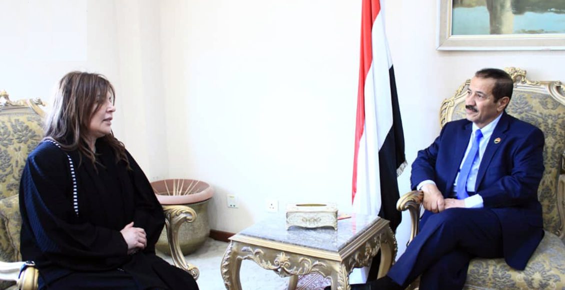 SANAA, Oct. 01 (YPA) – The Minister of Foreign Affairs in Yemen’s caretaker government, Hisham Sharaf, met on Sunday with the Permanent Representative of UN Women in Sanaa, Dina Zorba, to discuss the UN Women office’s plans and activities in Yemen.