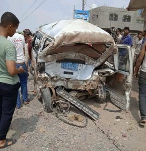 According to eyewitnesses, a military vehicle belonging to the factions of the UAE-backed Southern Transitional Council (STC) was traveling at an insane speed when it collided with a minibus transporting citizens in the Al-Fayyoush area of Toban district, resulting in six deaths from those inside the bus.