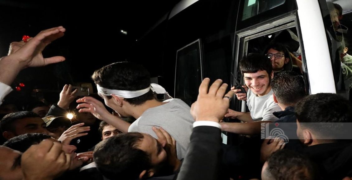 In Ramallah, hundreds of people received the released detainees, chanting slogans congratulating them on their release and calling for the release of the rest of Palestinian detainees in Israeli jails.