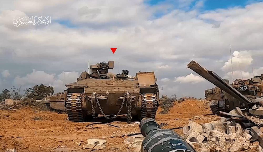 GAZA, Jan. 15 (YPA) – The Martyr Izz al-Din al-Qassam Brigades, Hamas’ military wing, released on Saturday video footage showing their fighters clashing with Zionist enemy soldiers and vehicles at the axes of Khan Younis city in the south of the Gaza Strip.