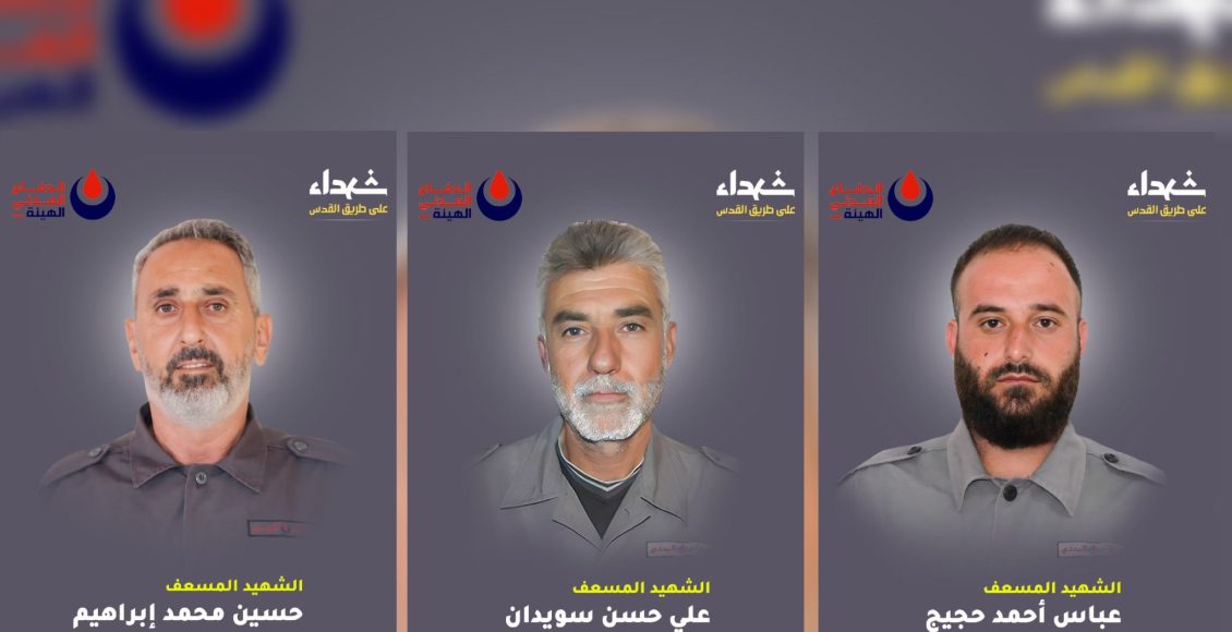 The National News Agency reported that the paramedics were martyred as a result of the direct Zionist raid on the civil defense center in the town of Al-Adissa.